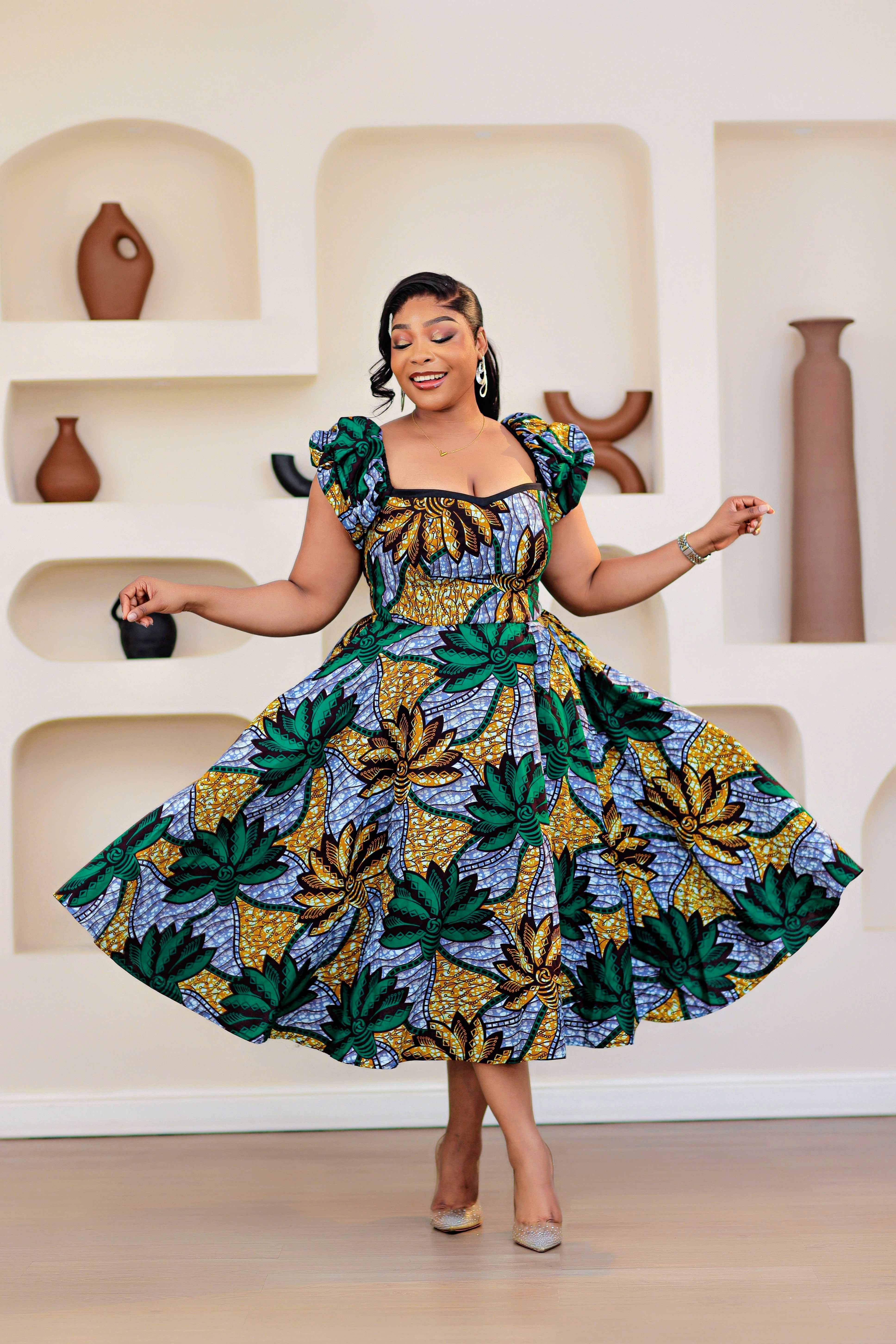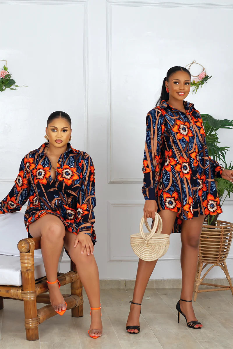 Ayaba Brocade Boubou & Mini dress set (gold & blue)